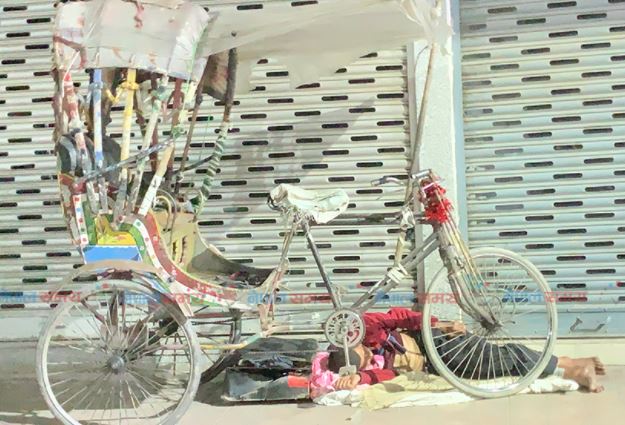 ठमेलस्थित सडकमा प्लास्टिक, थोत्रो तन्ना र मैलो कम्बलको सहारामा रात बिताउँछन् अचेल लालबहादुर। उनी भन्छन्, ‘एकातिर भुइँको चिसोले निद्रा बिथोल्छ अर्कोतिर कतिखेर–कतिखेर आउने गाडीको बेगले ब्युँझन्छु।’ रिक्सा एकै ठाउँमा उभिएको तीन दिन भइसक्यो। तर यात्रु छैनन्। शरीरलाई आराम दिन घुँडा खुम्च्याएर सुत्छन् उनी। शरीरले आराम खोज्छ तर उनको शरीरले निषेध आदेशको दिनदेखि आराम पाउन छाडेको छ।