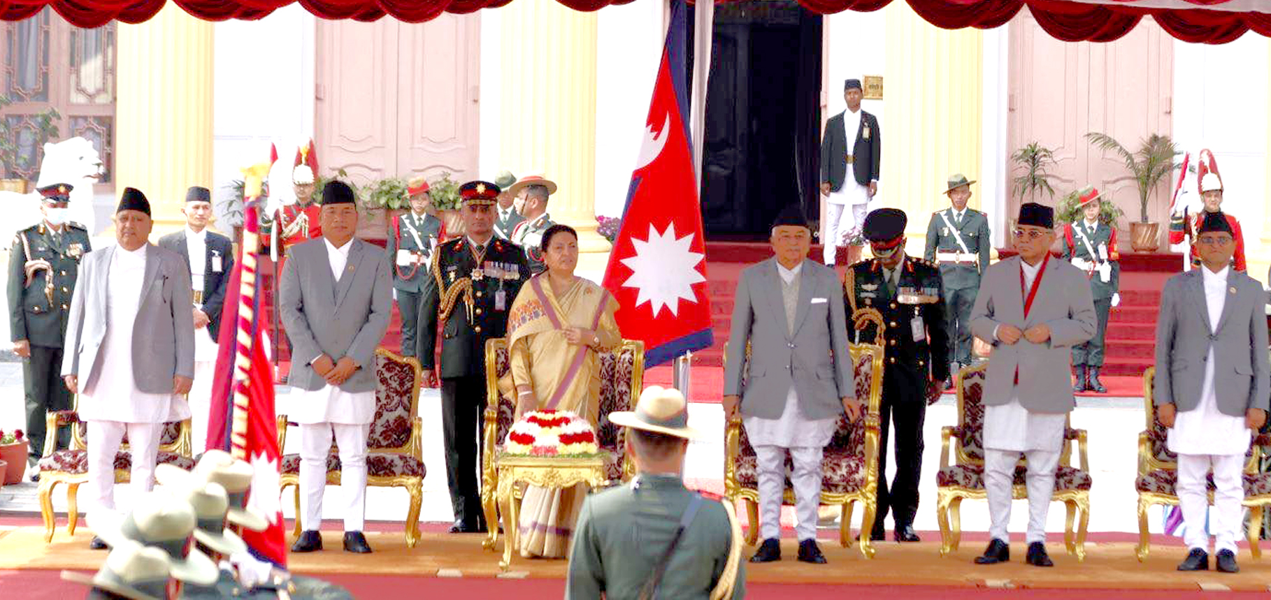 शपथग्रहण समारोहमा उपराष्ट्रपति, प्रधानमन्त्री, पूर्वराष्ट्रपति, उच्चपदस्थ अधिकारी लगायतको उपस्थिति रहेको थियो । पौडेल यही फागुन २५ गते विहिबार राष्ट्रपति पदमा निर्वाचित भएका थिए । सो अवसरमा राष्ट्रपति पौडेललाई नेपाली सेनाको एक टुकडीले सलामी अर्पण गरेको थियो ।